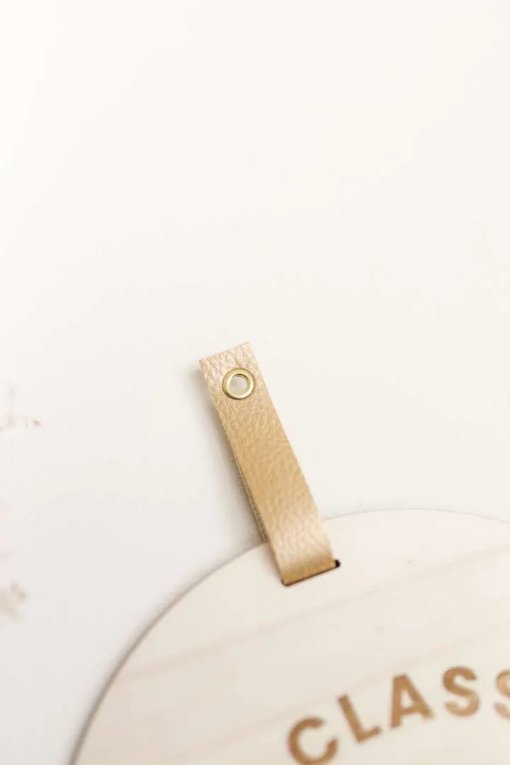 Matière : bois de peuplier – 5mm d’épaisseur – Attache en simili-cuir doré