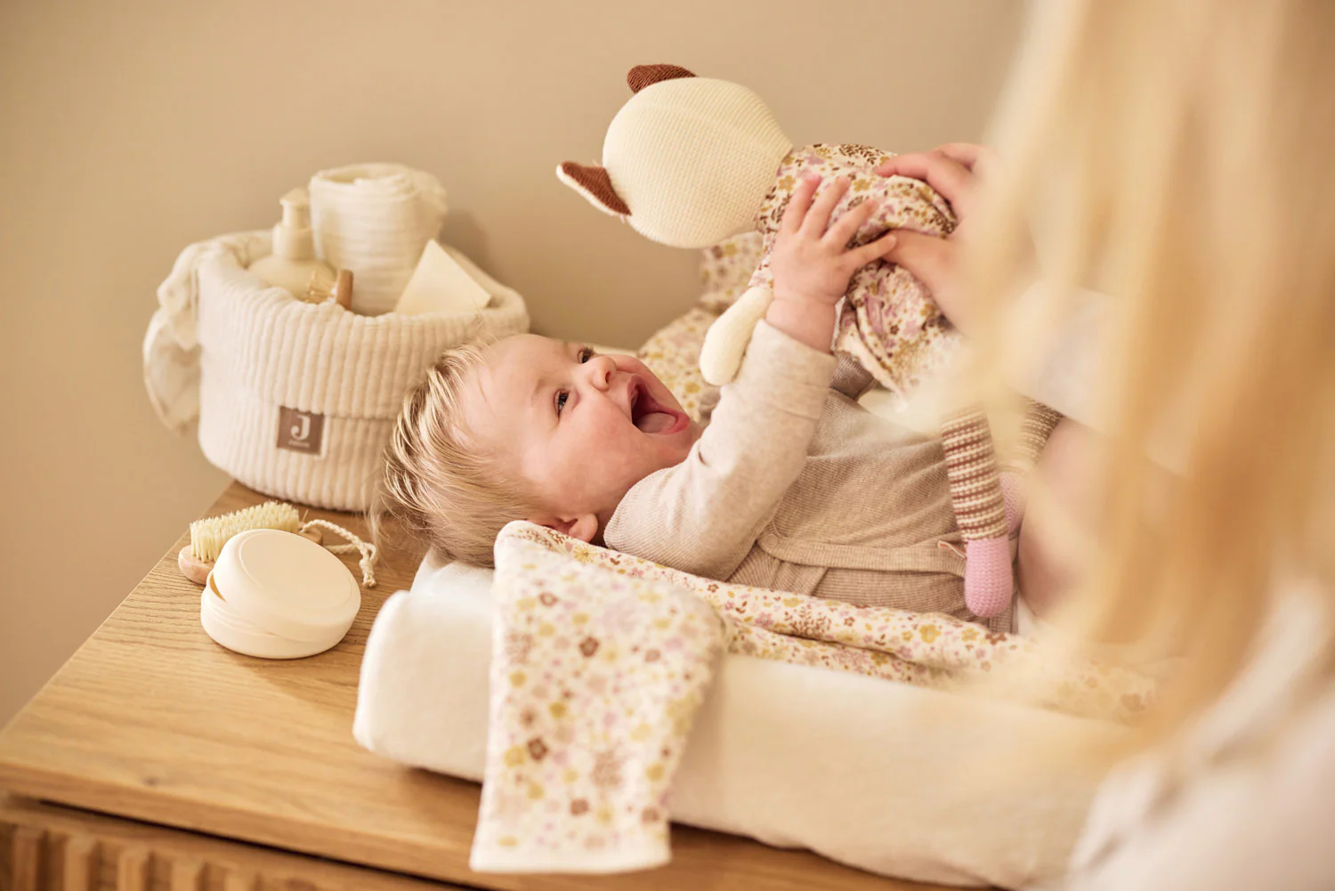 Son tissu côtelé tout doux le rend irrésistible… Parfait pour y ranger couches, cotons, produits et plein d’autres essentiels.