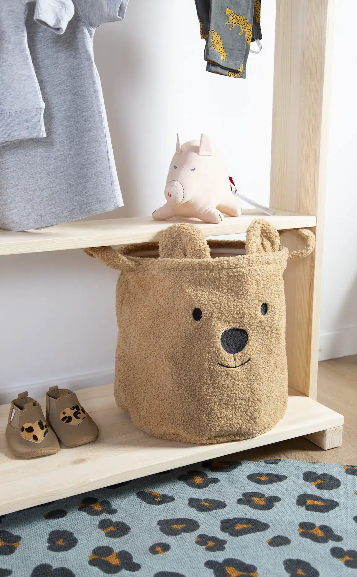 Le panier de rangement Teddy a une taille idéale à placer sur une commode par exemple