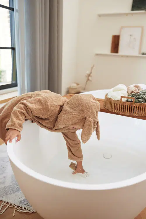Le peignoir éponge est parfait après le bain, une douche ou une baignade