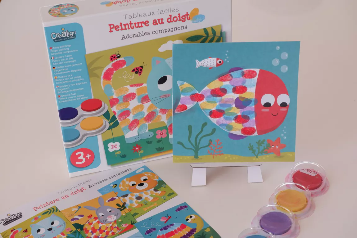 Découvrez le coffret Peinture au doigt adorables compagnons de Créalign’, une activité créative pour les enfants à partir de 3 ans qui leur permet de peindre avec leurs doigts.