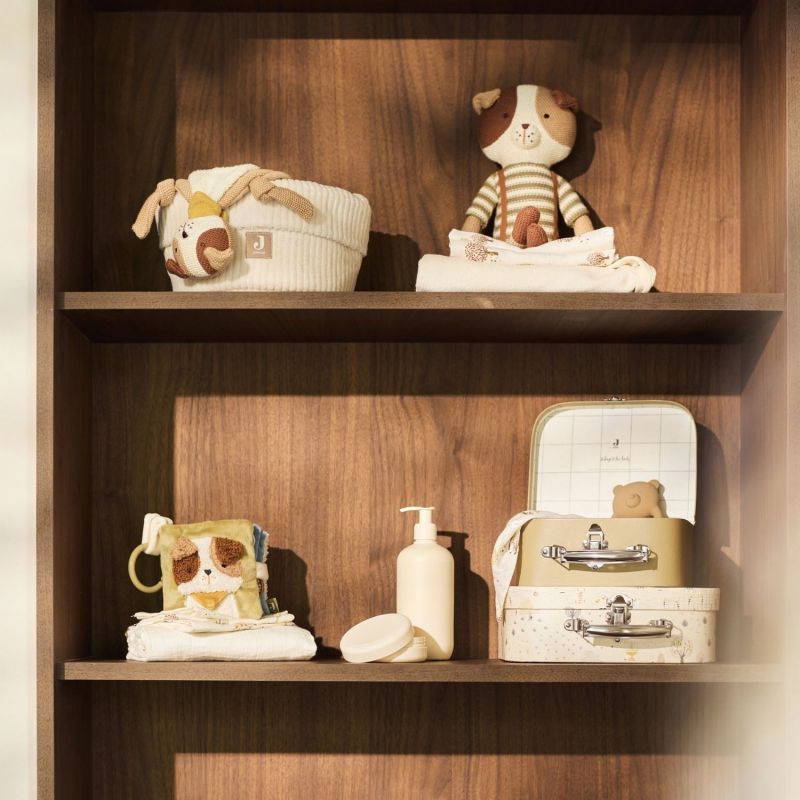 Avec son look irrésistible et son grand format de 40 cm, la peluche Mick de Jollein devient en un clin d’œil le fidèle compagnon des tout-petits. Sa texture tricot toute douce invite aux câlins à volonté, tandis que sa forme stable lui permet de tenir assise – un vrai plus pour décorer joliment la chambre de bébé.