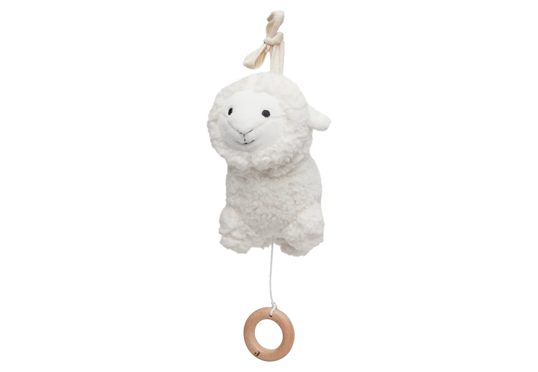 « Dors mon enfant, dors »… C’est la douce musique qui sort du mignon petit agneau quand on tire la ficelle. Cette sympathique peluche musicale peut être apaisante pour ton bébé. En haut, l’agneau est muni d’un ruban qui tu permet de l’attacher facilement à quelque chose. Tu peux assortir cette peluche musicale aux autres articles de la collection Lamb, par exemple. En outre, l’agneau mignon se trouve dans le motif Farm. Conseil : fais jouer régulièrement la musique près de ton ventre de femme enceinte et tu verras qu’elle sera familière et apaisante pour ton enfant nouveau-né. Ce peluche musicale est donc un joli cadeau de grossesse. Il constituera également un excellent cadeau de naissance.