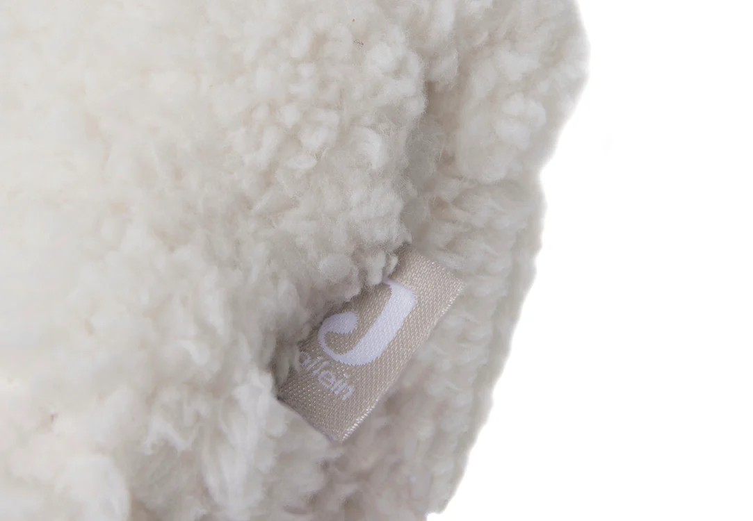 L’agneau est blanc et de couleur crème. Le cordon est de couleur naturelle.