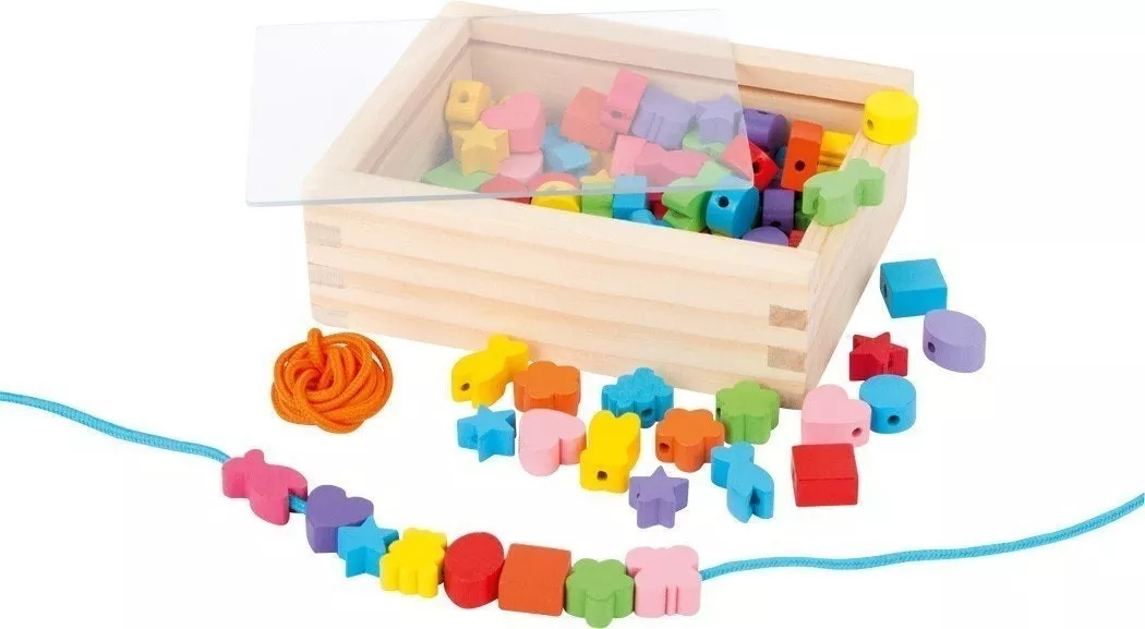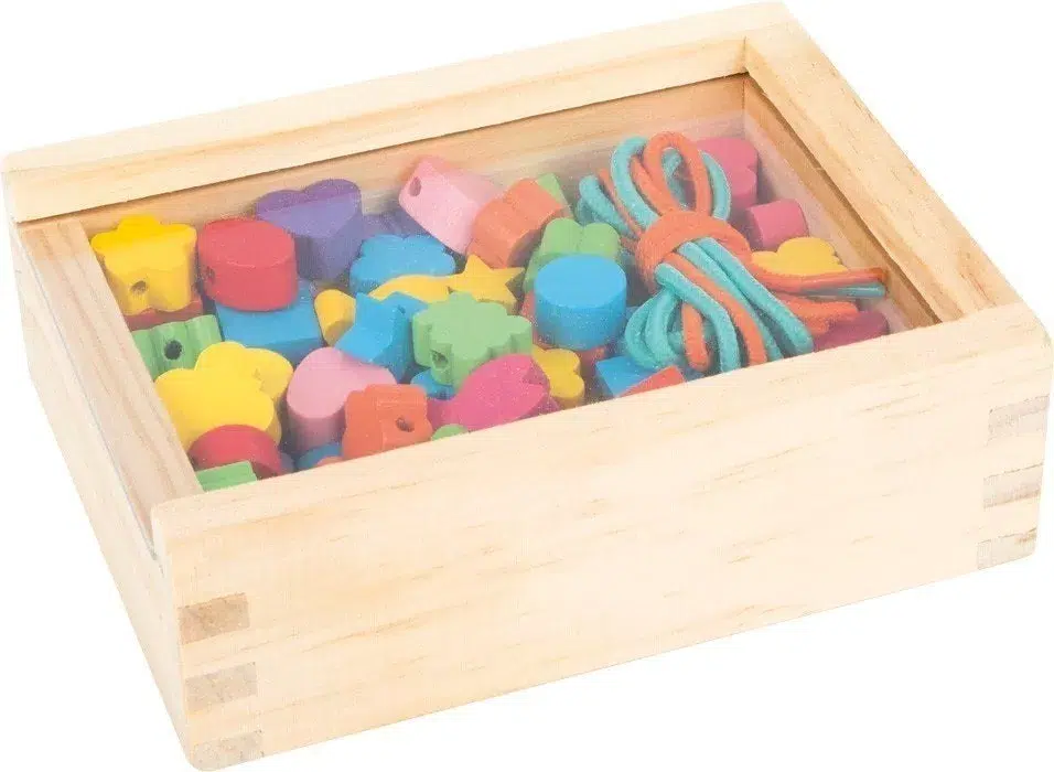 Une boîte avec des jolies perles en bois certifié FSC® 100 %