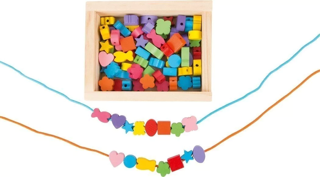 Enfiler des perles et des pierres entraîne la coordination œil-main et la motricité fine. Quel bijou sera créé ensuite ?