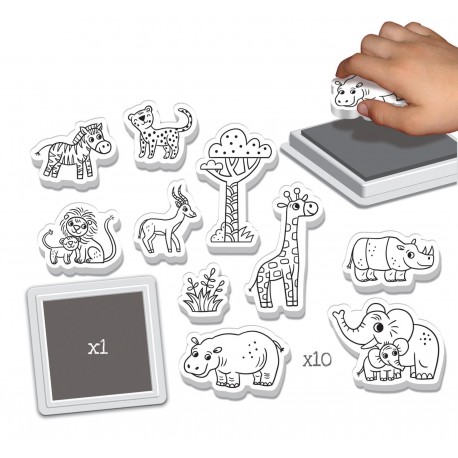 Des personnages à tamponner afin de créer son propre univers de savane et pour réaliser ses plus beaux dessins !