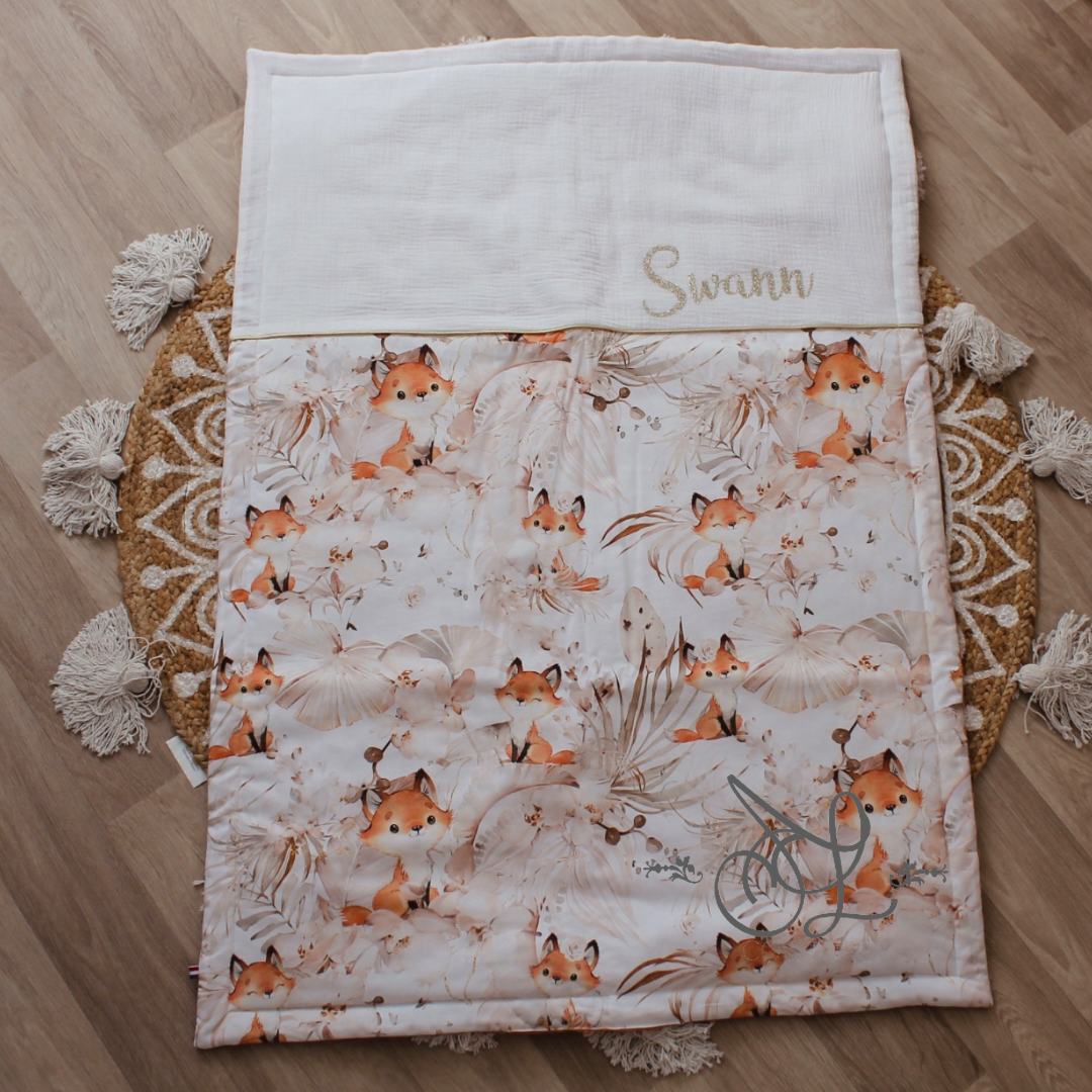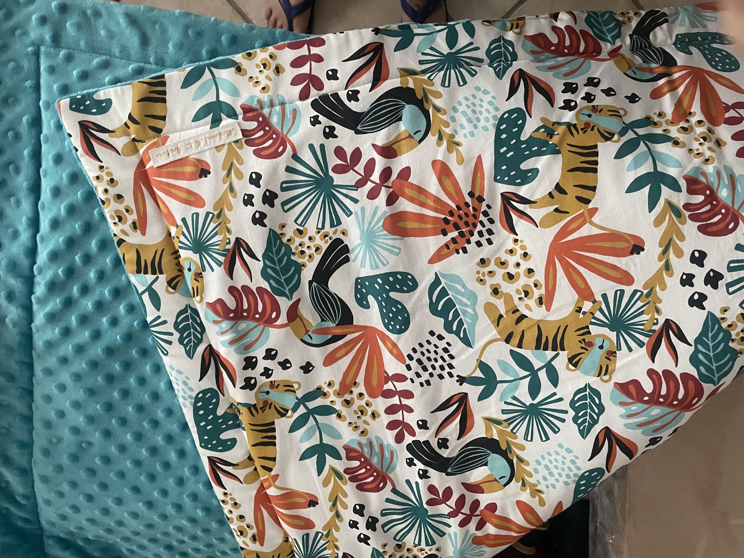 Cette couverture chaude peut s’emmener facilement et servir de tapis pour jouer.