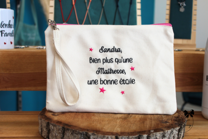 La pochette brodée : 100% personnalisable, elle va devenir votre accessoire indispensable. Laissez-lui une place dans votre sac à main !