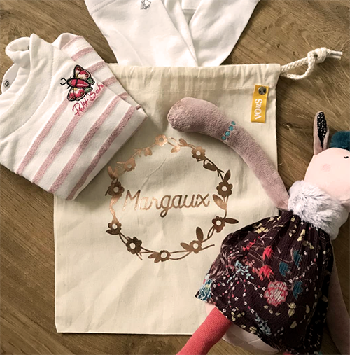 Pochon moyen : Parfait pour les petits pots, couches, cotons, bref : les indispensables d’un bébé et d’un enfant.