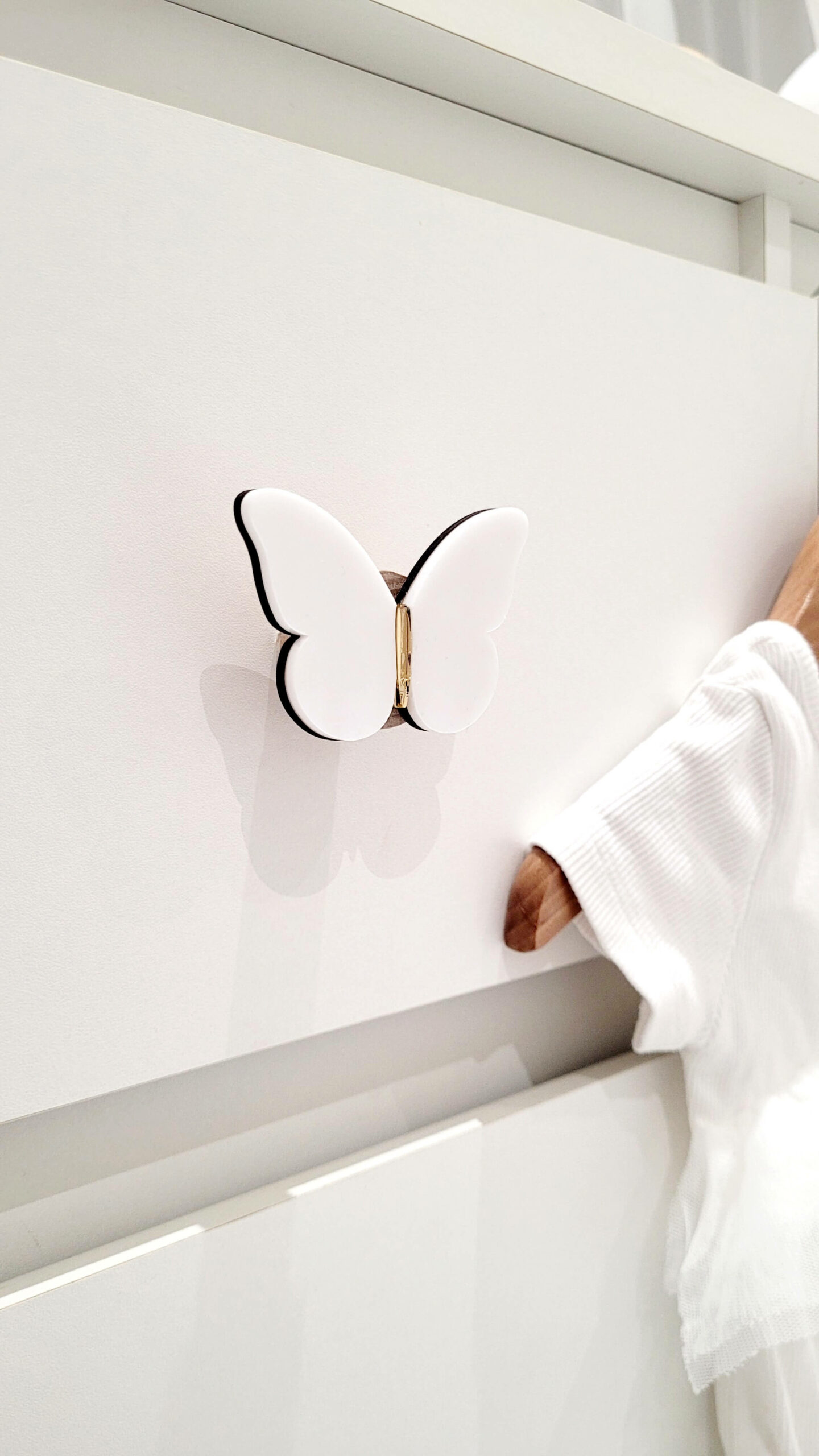 Poignée de tiroir ou de porte papillon blanc