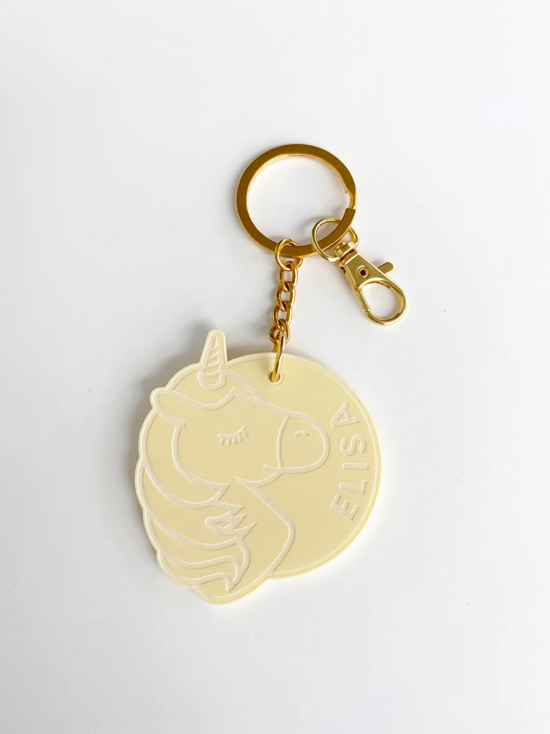 Un porte-clé coloré en forme de Licorne ! C’est certain avec lui vous n’oublierez plus jamais vos clés ! Il est à personnaliser avec un prénom au recto. Vous avez aussi la possibilité de graver un numéro de téléphone ou autre au verso (3 lignes max). Disponible dans les coloris jaune, rose, orange, vert et violet. Délais de fabrication : 2 à 3 jours Livraison : 72h en lettre suivie Matériaux : Acrilyque – anneau en laiton doré Dimensions : 5,5×5 (anneau 3cm Ø)