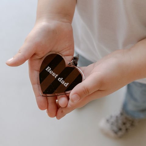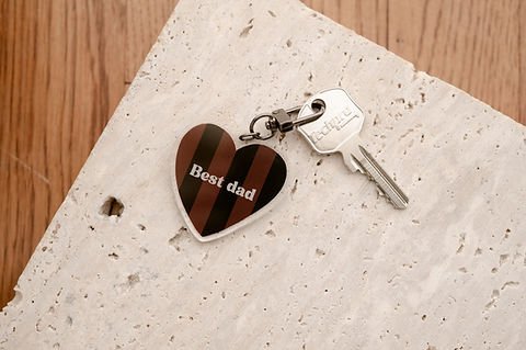 Un petit cadeau trop mignon pour les papas : le porte-clés BEST DAD rayé marron et noir.