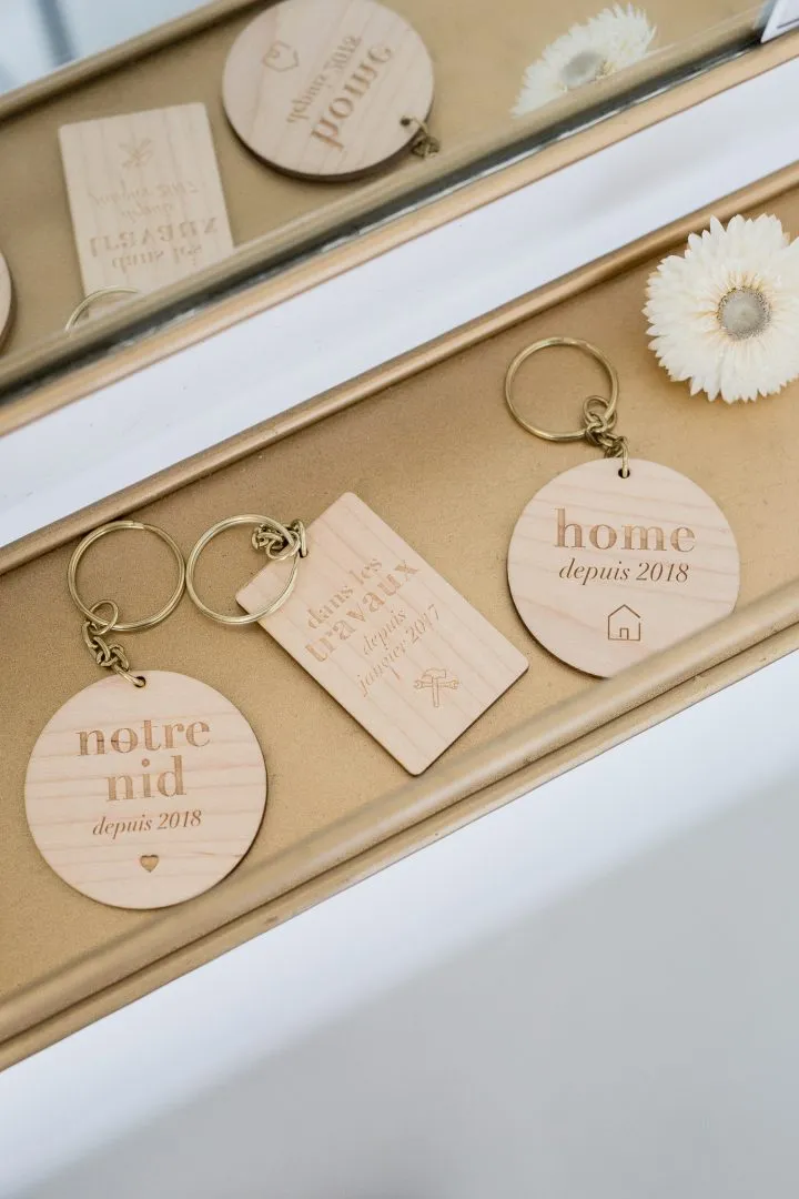Porte-clés décoratif pour marquer le début de la grande aventure avec votre maison, à personnaliser de votre date, à porter tous les jours sur soi.
