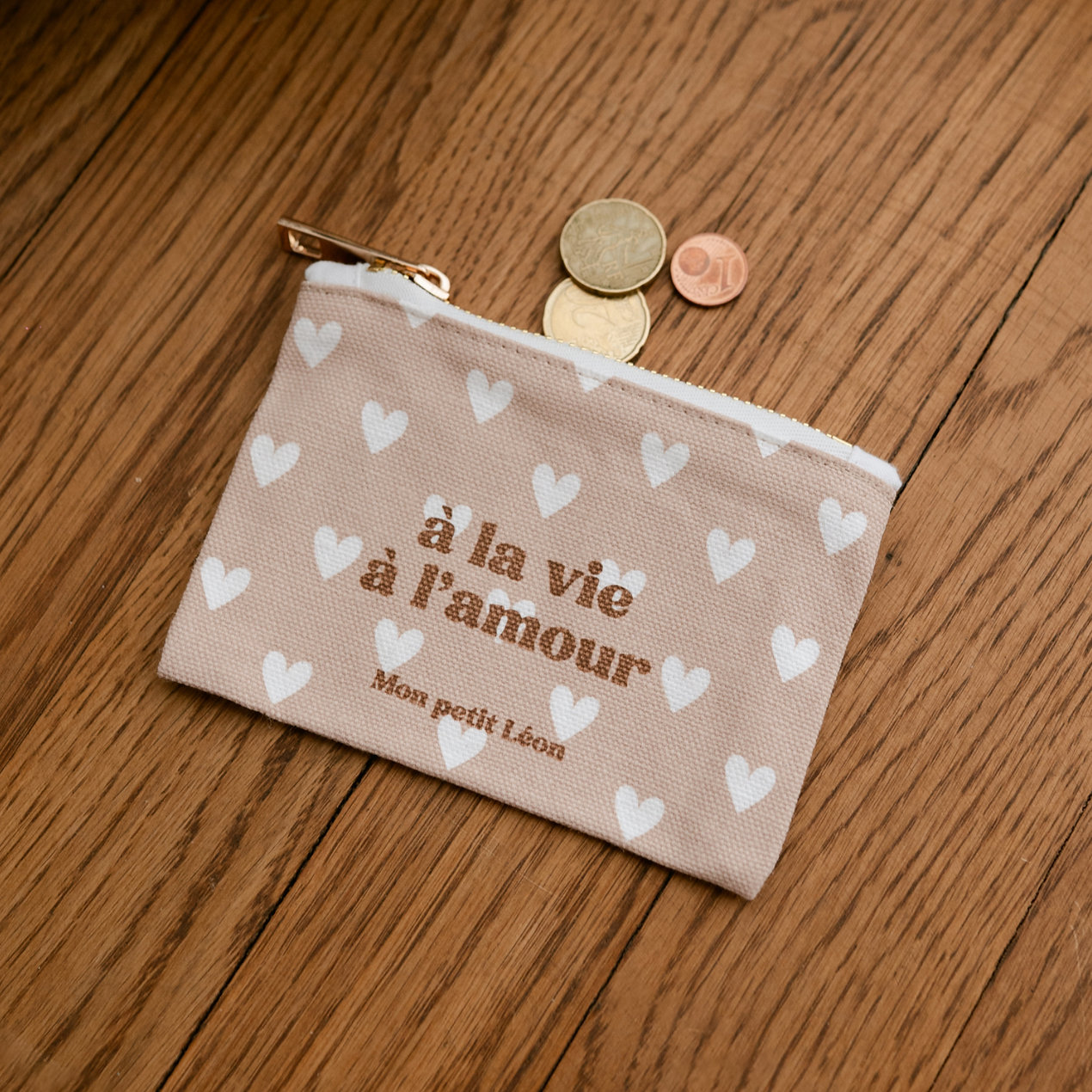 Porte-Monnaie Cœur Beige nude « A la vie à l’amour »