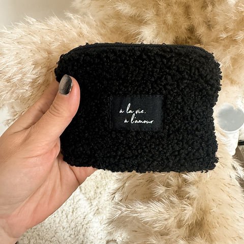 Porte monnaie moumoute noire « à la vie à l’amour »
