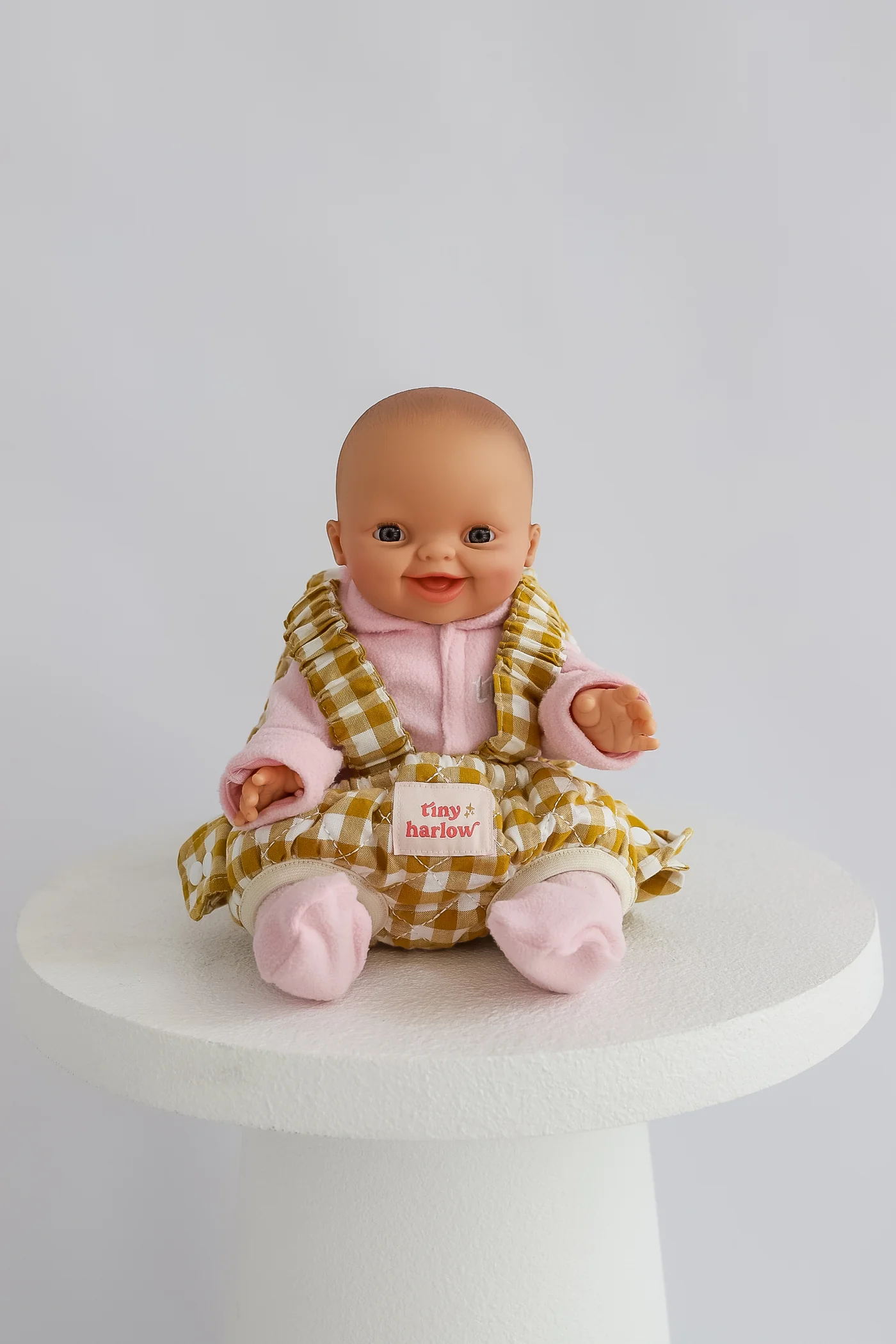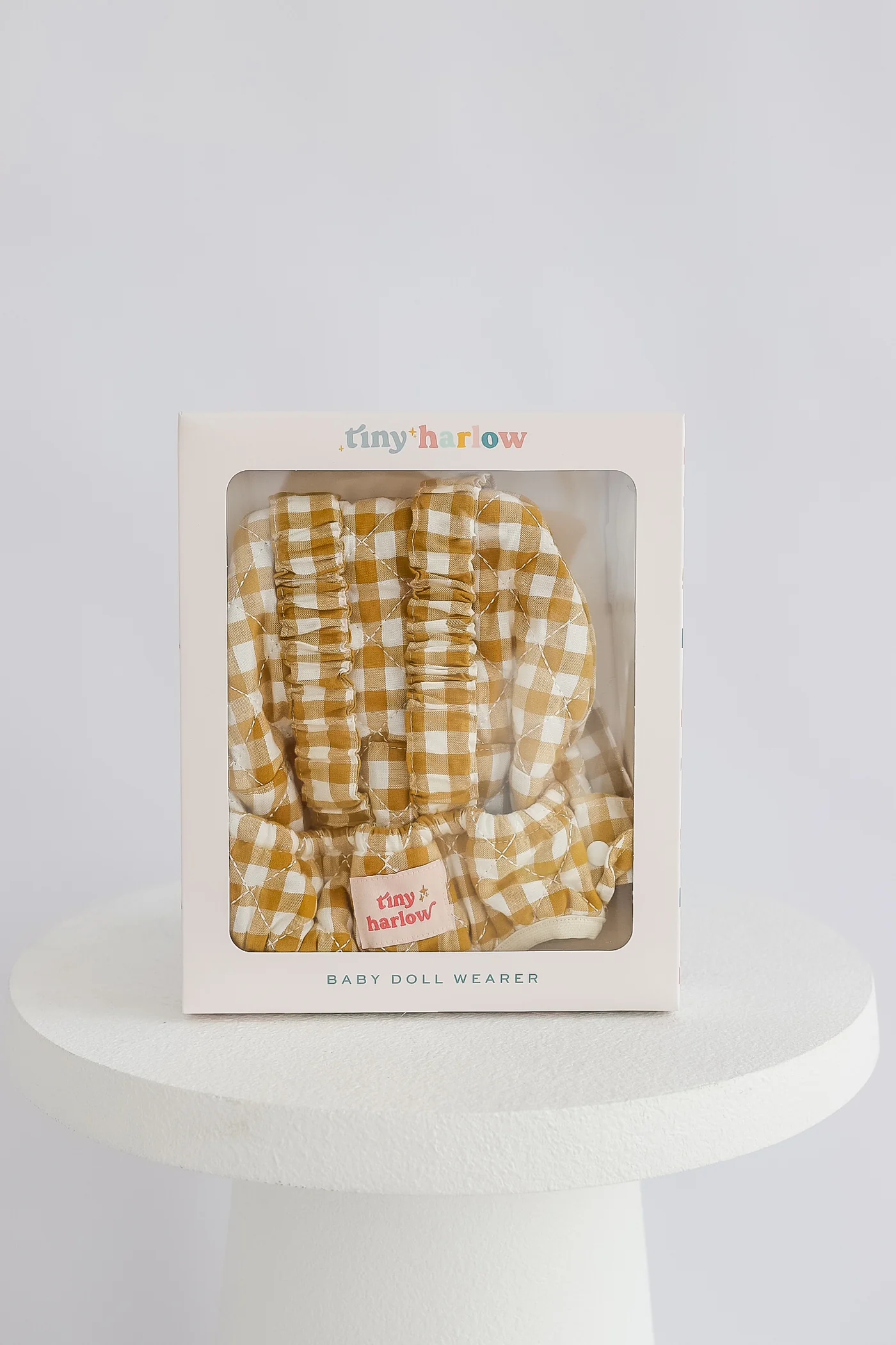 Craquez pour le porte poupée / Vichy camel signé Tiny Harlow, l’accessoire tout doux qui accompagne enfants et poupées au quotidien !