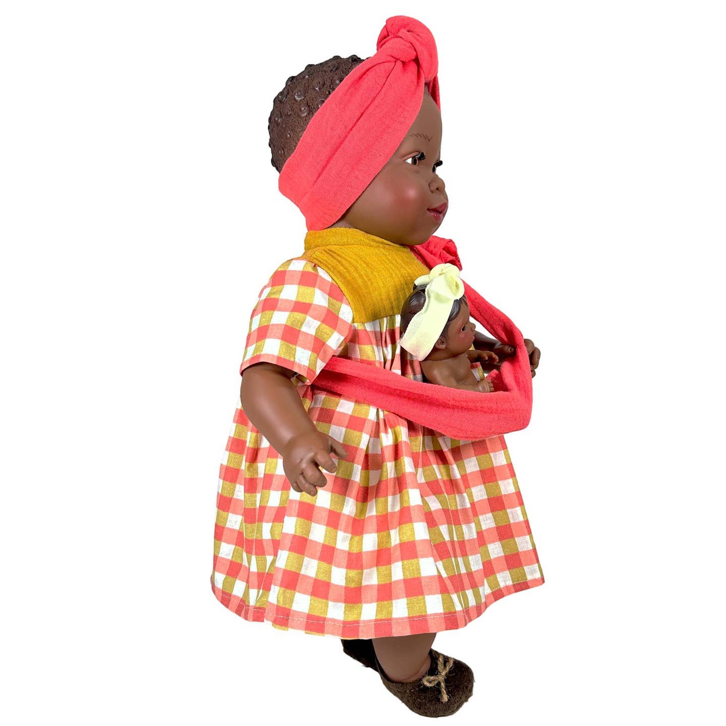 Nos poupées Maria avec bébé sont des poupées aux vêtements ethniques et aux traits africains.