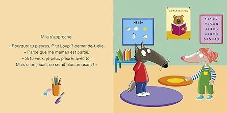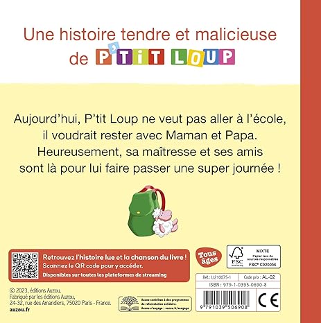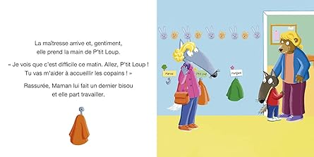 Mais il faut pourtant y aller : sa maîtresse et ses amis vont tout faire pour que P’tit Loup passe une bonne journée et lui rappeler à quel point aller à l’école peut être amusant.