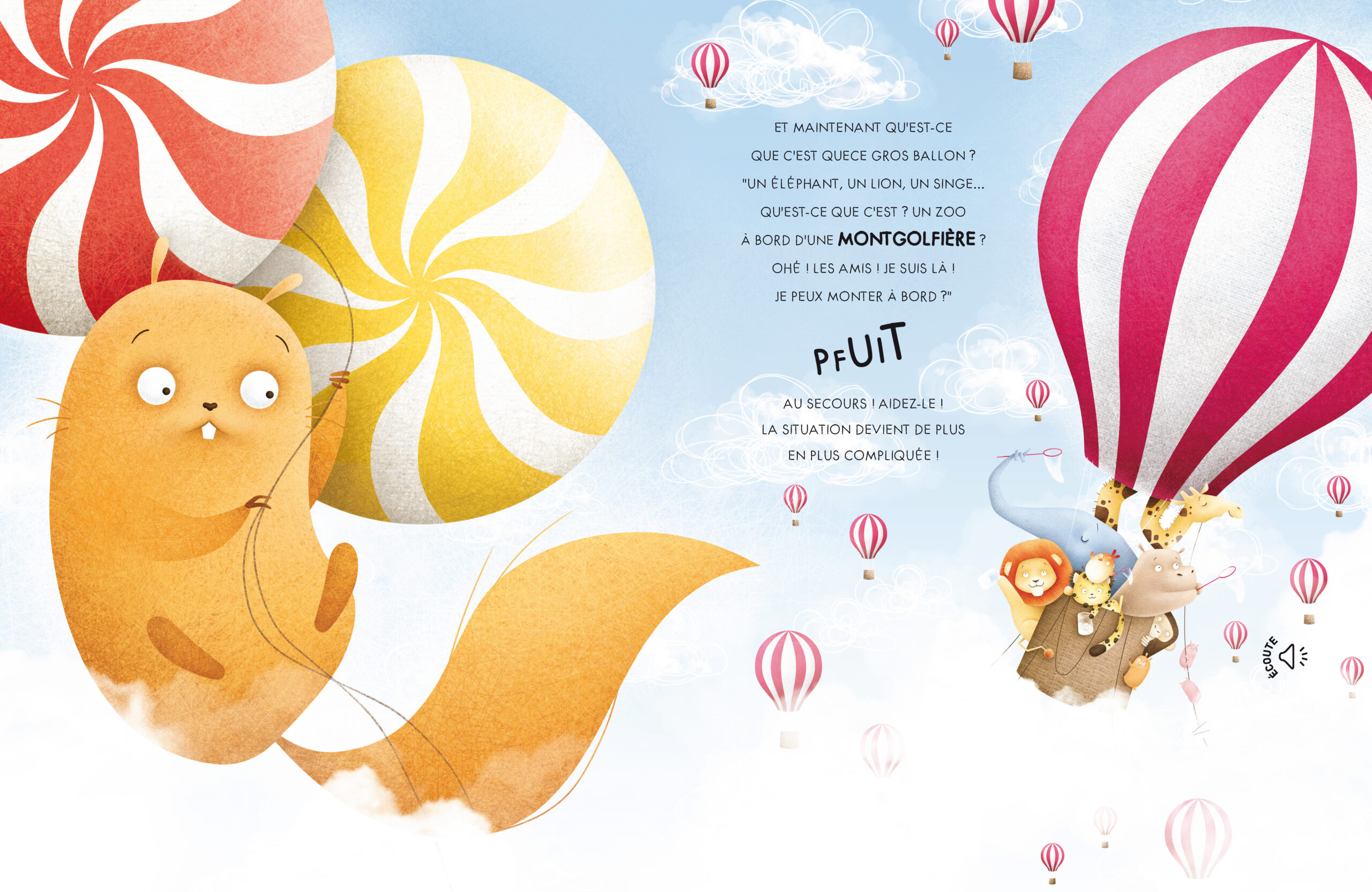 A travers ce livre, votre enfant pourra découvrir l’histoire d’un petit écureuil emporté dans les airs par des ballons!