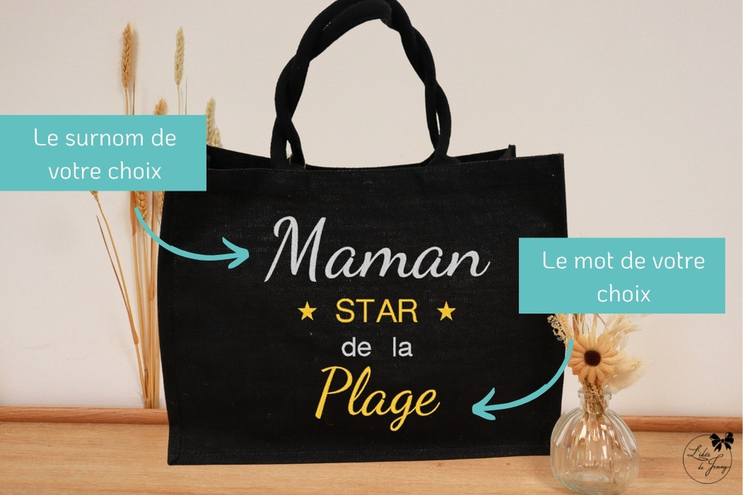 Faites broder le surnom de votre maman pour un cadeau vraiment unique. Ce petit mot doux brodé transformera ce sac en un souvenir précieux, qu’elle utilisera chaque jour avec fierté.