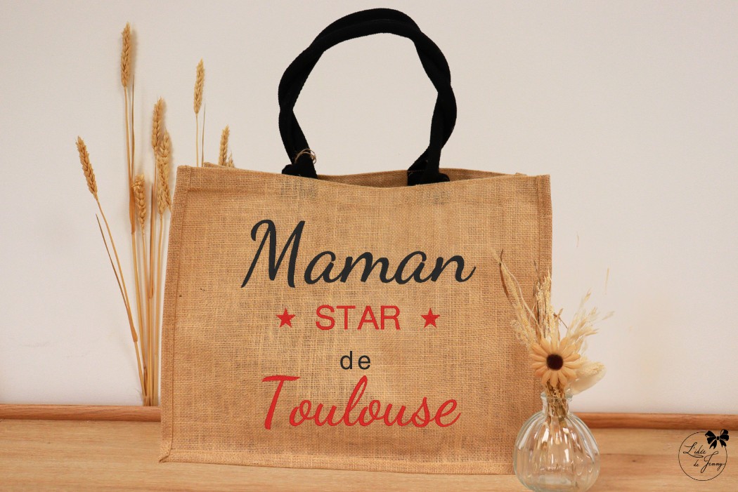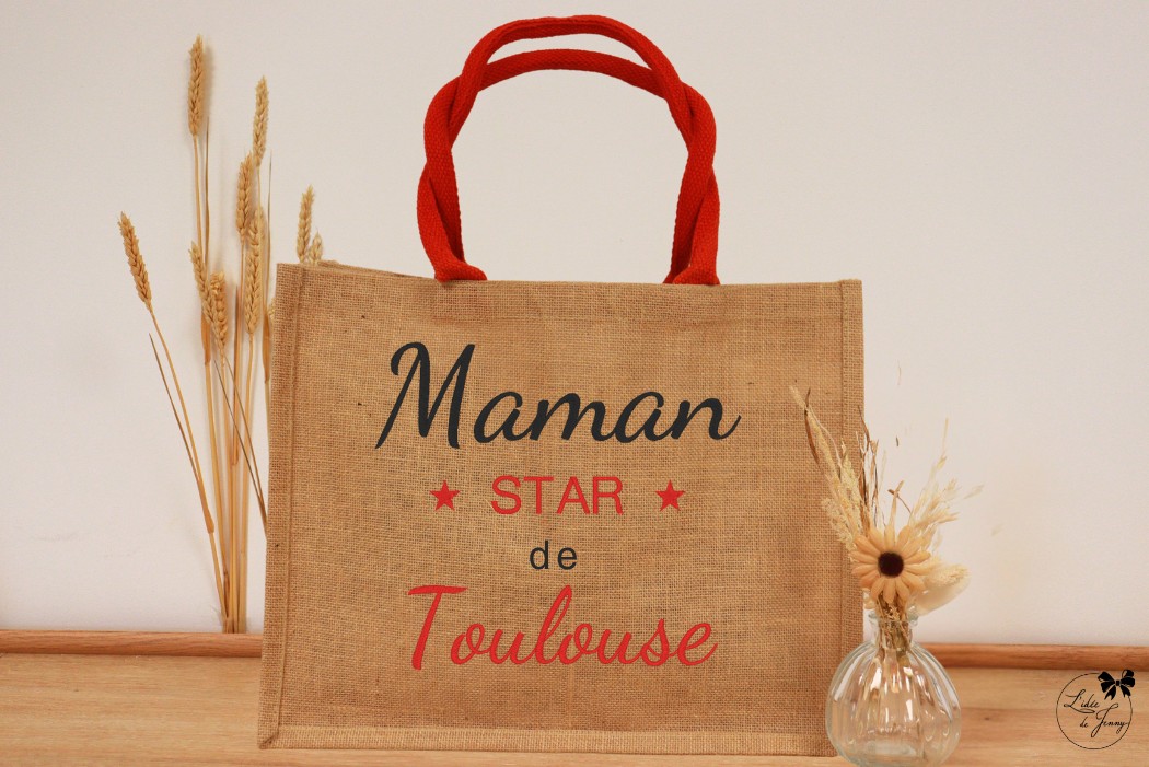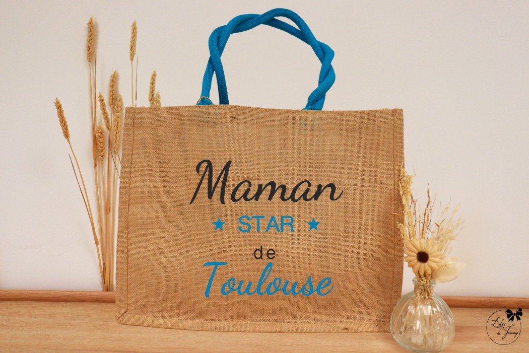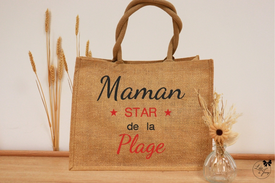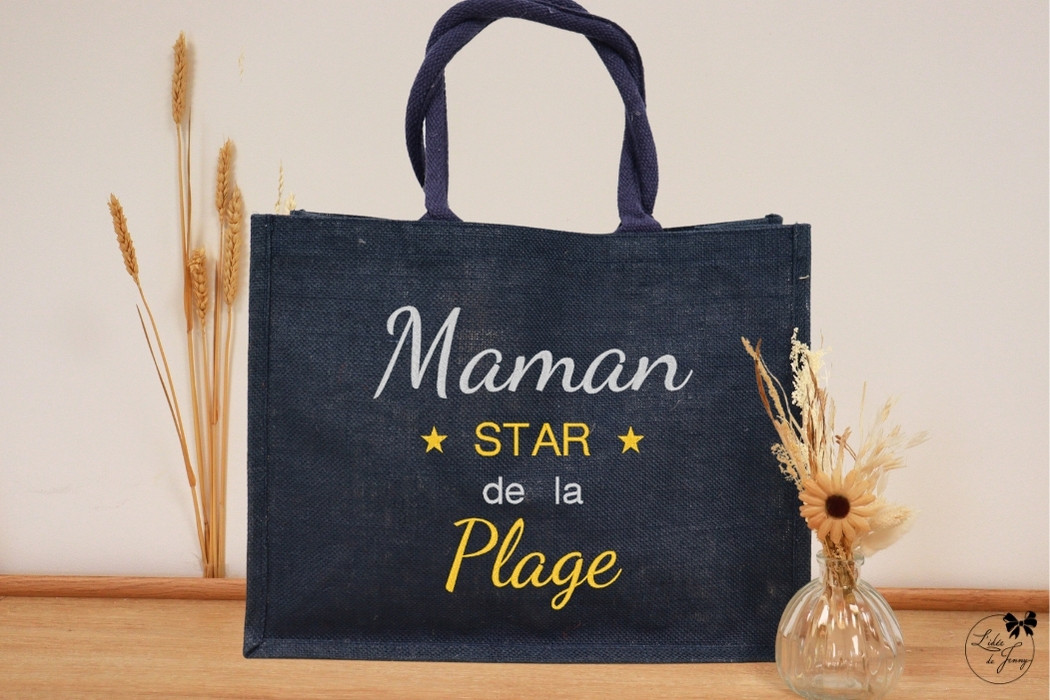 Ce sac maman personnalisé en toile de jute est à la fois pratique et raffiné. Il est parfait pour une virée au marché, une promenade en ville ou encore une journée détente. Grâce à ses anses solides et à sa grande contenance, il permet de tout transporter facilement.