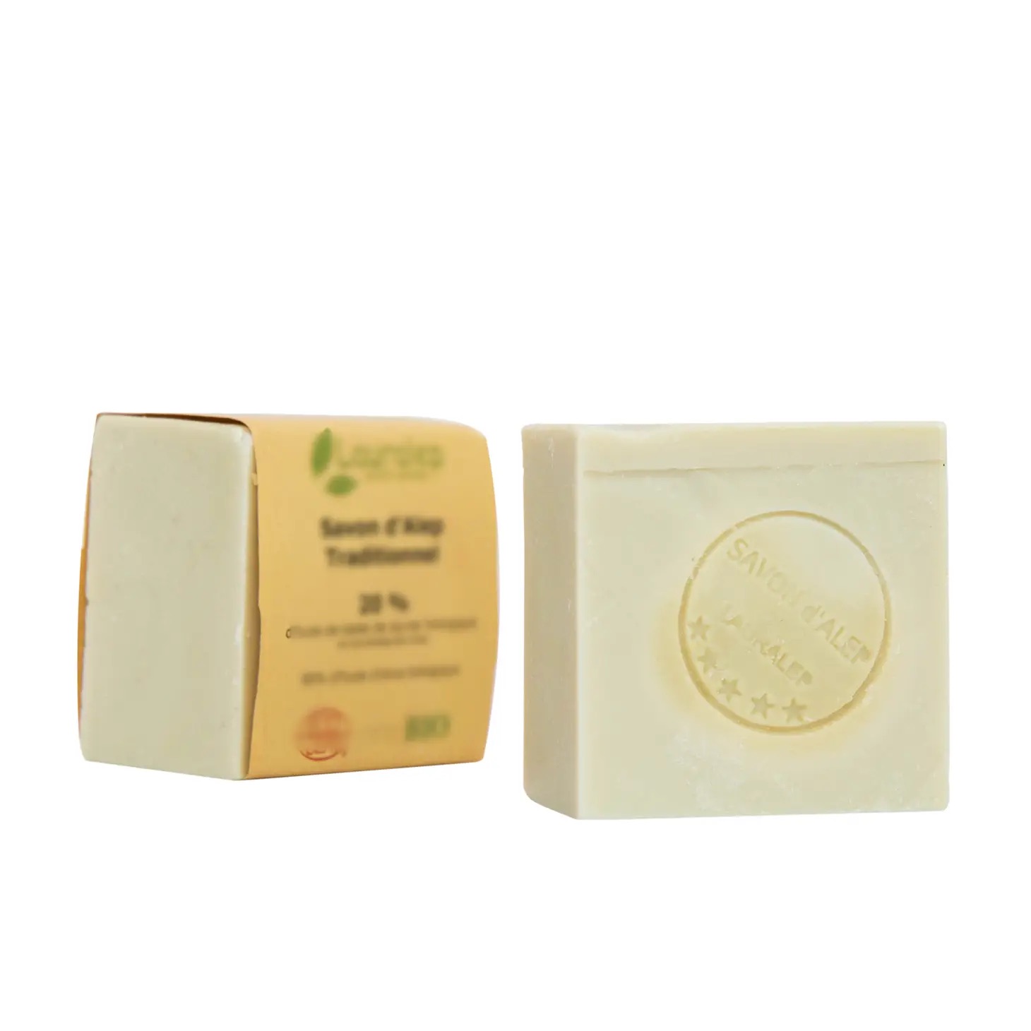 Savon d’Alep fabriqué par saponification à froid : Huile d’olive Biologique, enrichi à 20% d’huile de baies de laurier traditionnelle