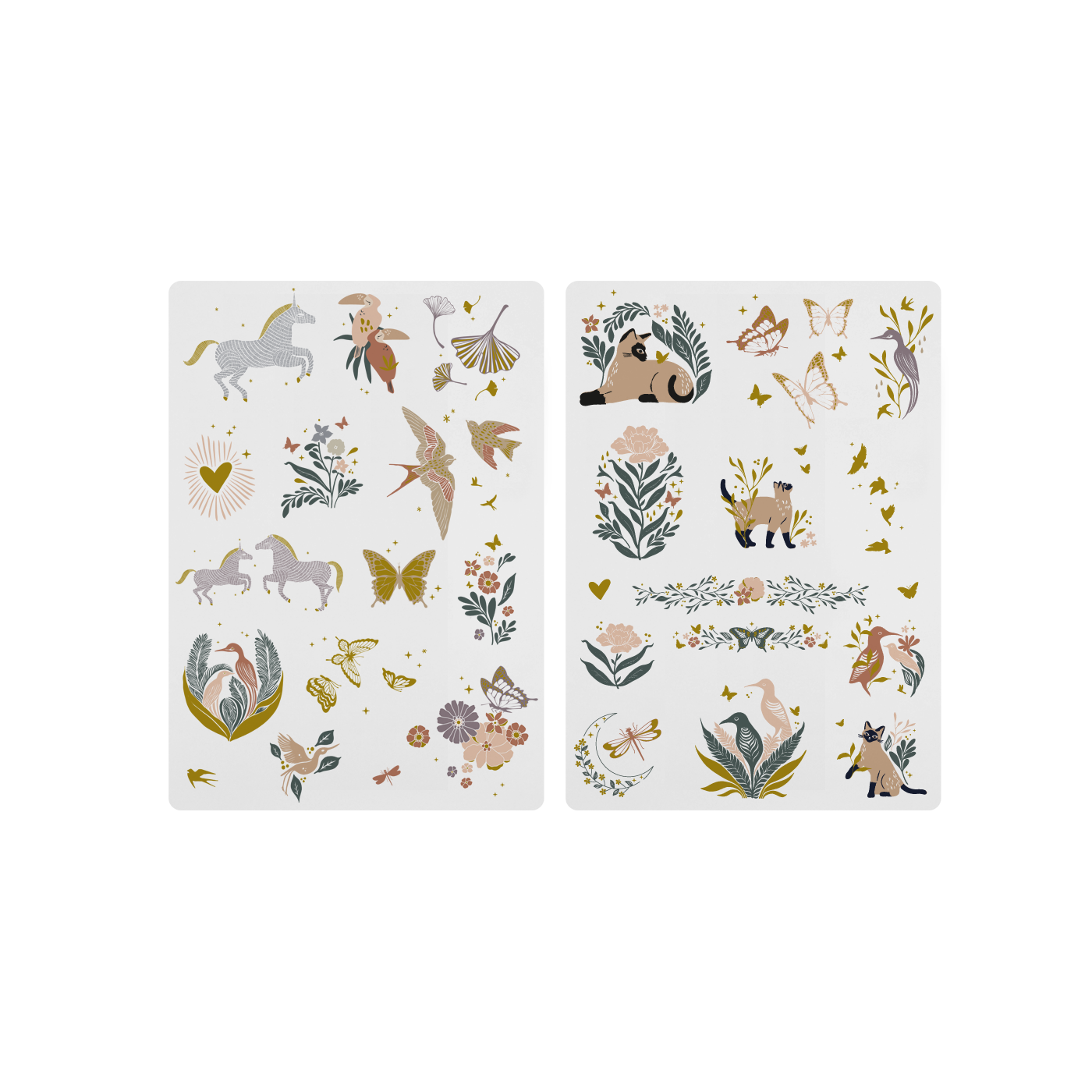 Un ensemble de 30 tatouages éphémères aux jolis détails dorés qui permettront à votre enfant de s’amuser et de laisser libre court à son imagination. Papillons, licornes, oiseaux, fleurs… composent cet ensemble poétique.