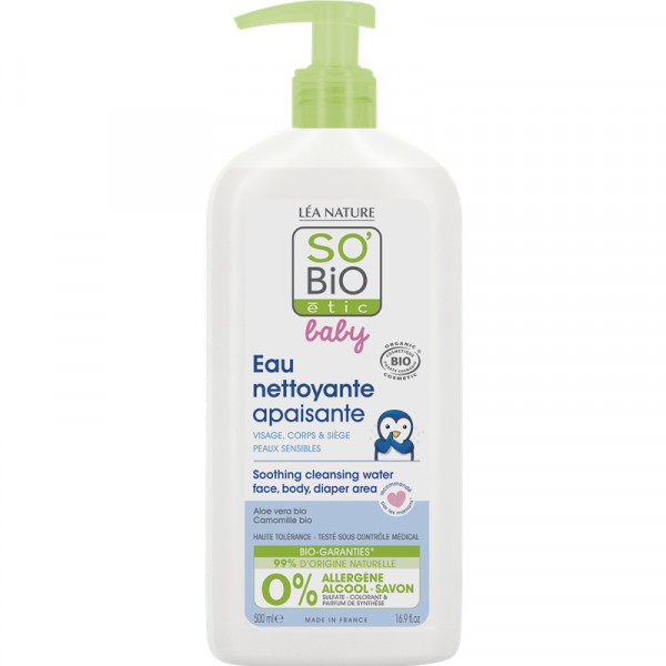 L’eau micellaire nettoyante SO’BiO étic® baby nettoie et rafraîchit la peau de bébé en douceur, sans nécessité de rinçage. Dès l’application, sa peau est propre et souple. 99% d’origine naturelle, sa formule à base de glycérine végétale, aux propriétés hydratantes1, protège la peau du dessèchement. Enrichie en aloe vera et camomille bio, elle diminue les sensations d’inconfort et préserve le film cutané de bébé. Ingrédients: Aqua /Water/Eau, Anthemis Nobilis Flower Water*, Glycerin, Polyglyceryl-4 Caprate, Sodium Levulinate, Lactobacillus Ferment, Sodium Benzoate, Sodium Hydroxide, Parfum (Fragrance), Lactic Acid, Aloe Barbadensis Leaf Juice Powder*. *Ingrédients issus de l’agriculture biologique. 99% du total des…