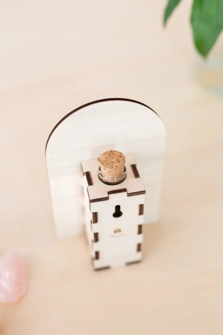 Matériaux : bois de peuplier, verre et liège.