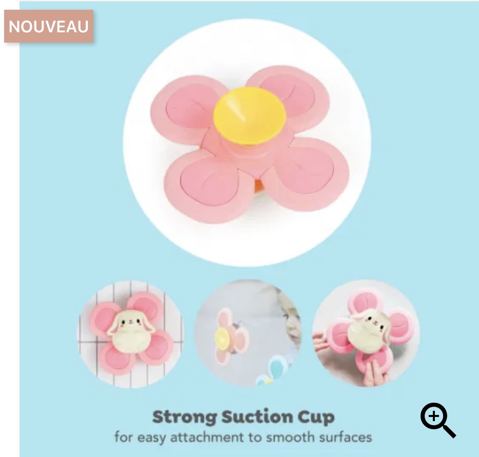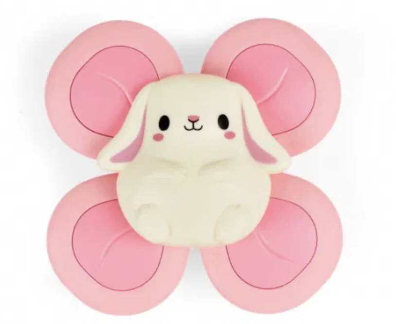 Conçu pour encourager la motricité fine, le jeu sensoriel et l’apprentissage par cause à effet, ce magnifique jouet lapin est doté d’un élément de rotation à quatre palettes qui ravira les sens des petits tigres. Une solide ventouse permet de le fixer facilement à toute surface lisse (baignoires, carreaux, chaises hautes, miroirs, réfrigérateurs et vitres de voiture).