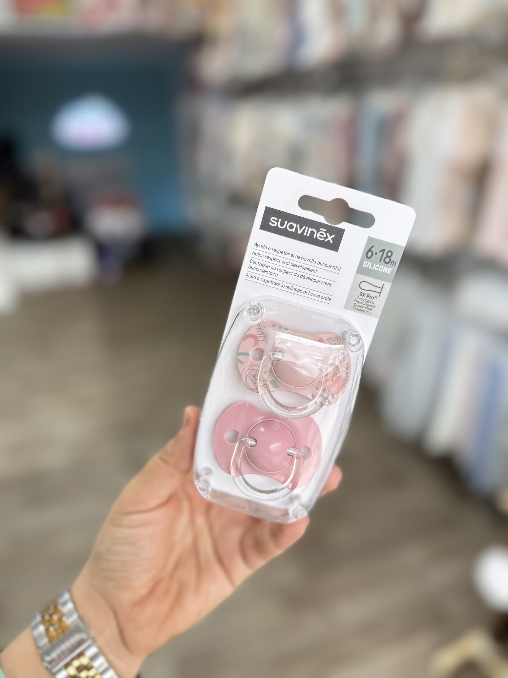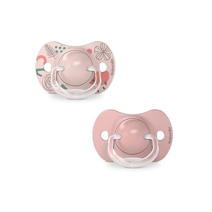 - Peu importe de quel côté Suavinex 2 sucettes Symétriques SX Pro 6-18 mois est placée dans la bouche, réduit le risque de problèmes dans le développement de la cavité orale.
