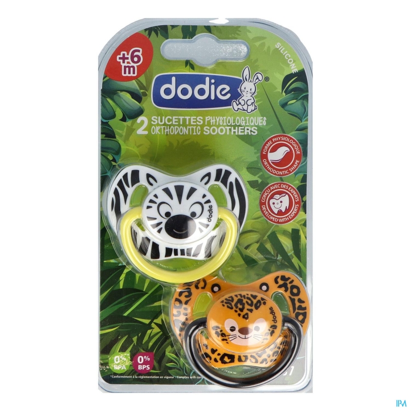Les Sucettes Dodie sont fabriquées sous contrôle de dentistes et de pédiatres, afin de respecter la physiologie de bébé et répondre à son réflexe naturel de succion. Décorée, sans bisphénol A. Téterelle asymétrique. Corolle munie de trous de ventilation pour éviter les irritations de la peau par la salive. Bord arrondi. Conforme à la norme NF EN 1400. Déco Jungle