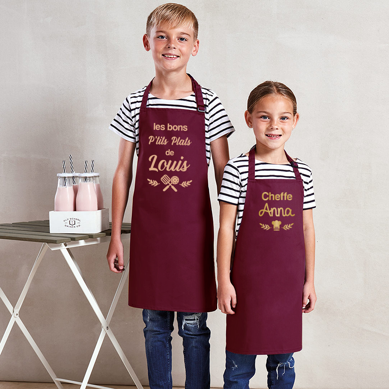 A offrir pour tous les passionné.e.s culinaires et les gourmand.e.s ! Joli tablier résistant qui sera le partenaire idéal de toute personnes mordue de bons petits plats. Tablier qui convient aux enfants de 5 à 11 ans.