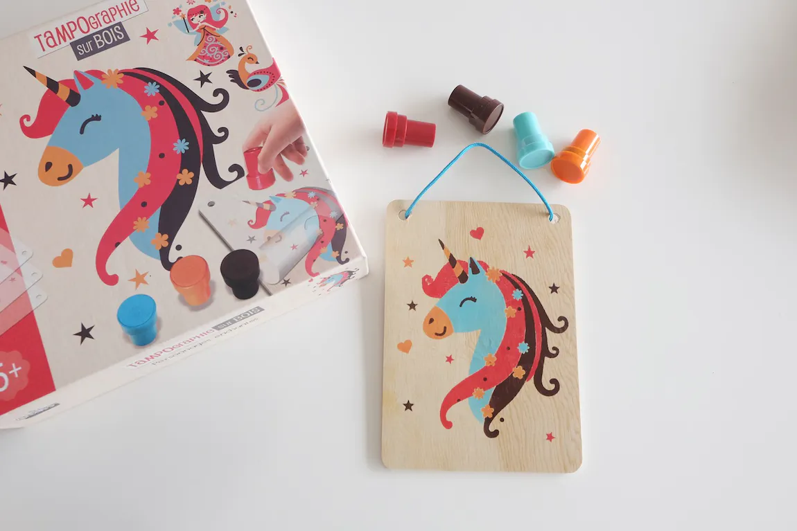 Des coffrets de tampons sur bois qui permettront de dessiner facilement sur de belles planchettes en bois.