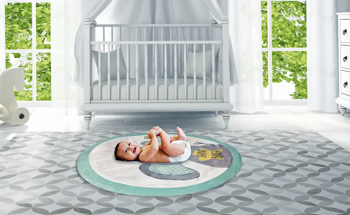 Ce tapis de jeu en peluche super doux et réversible de 90 x 90 cm protège ton bébé lorsqu’il joue et marche à quatre pattes. Grâce à sa surface hypoallergénique, ce tapis est ce qu’il y a de mieux pour la peau sensible de bébé.