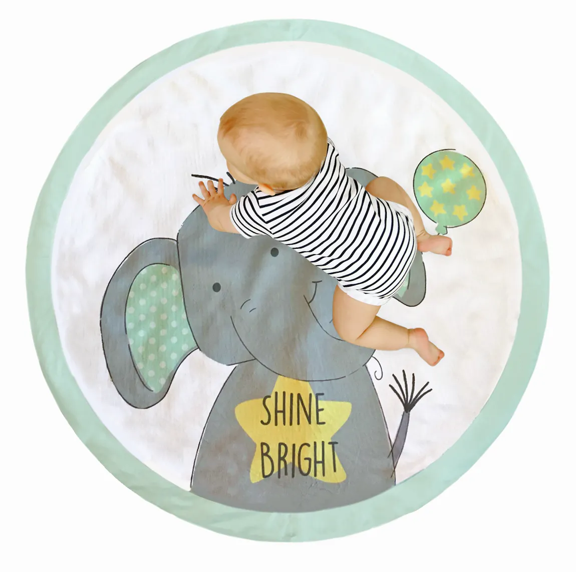 Tapis de jeu super doux éléphant gris et menthe