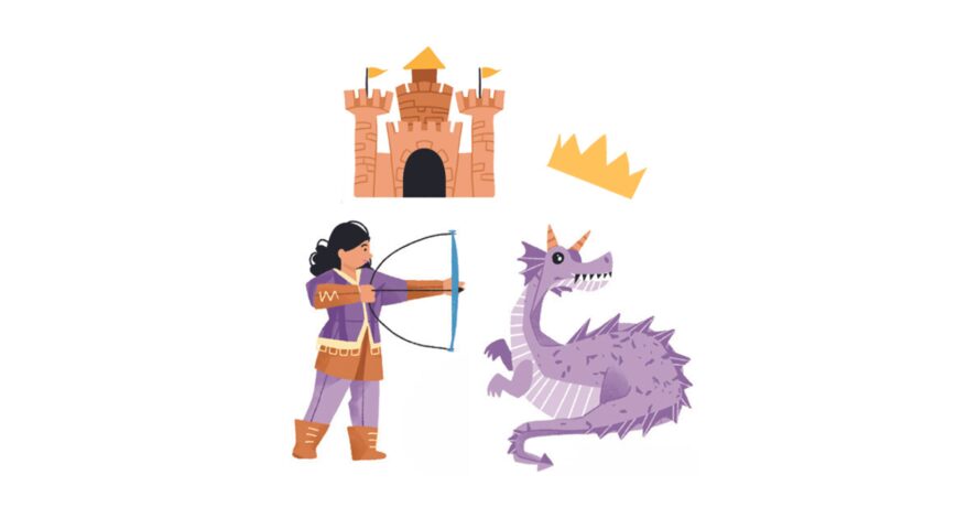 Voyagez dans l’univers des chevaliers, retrouvez les motifs suivants : Un archer, un dragon, une couronne et un château !