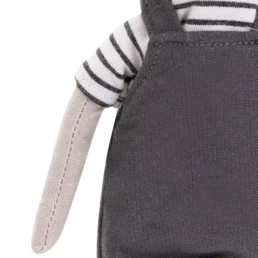 Ses habits sont entièrement amovibles, sa salopette est en coton 100% biologique.