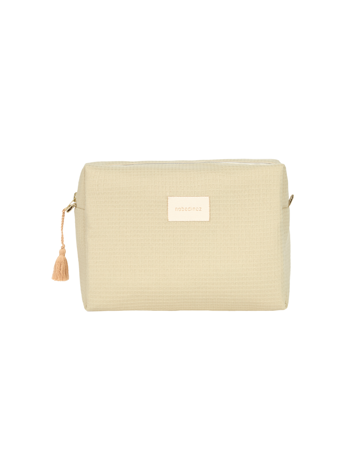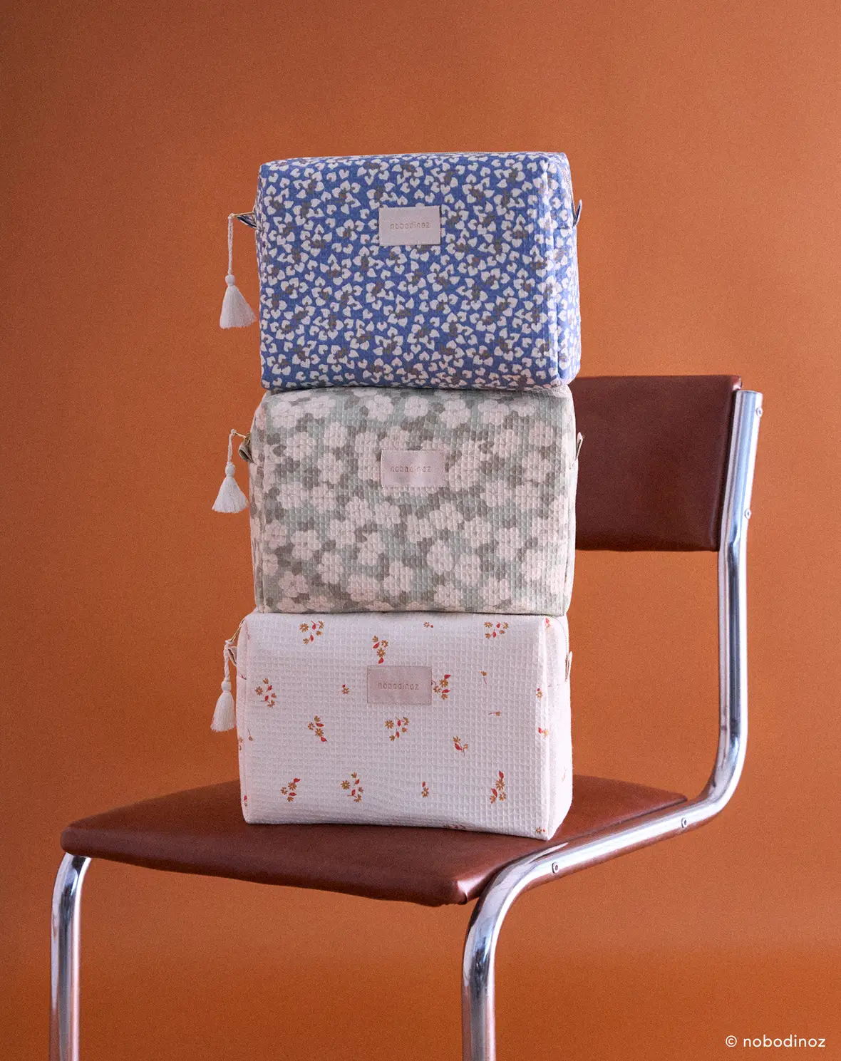 Pratique et chic, cette large trousse de toilette, peut être utilisée pour ranger les couches, cotons, liniment, lingettes, crèmes, tous les accessoires indispensables pour bébé.