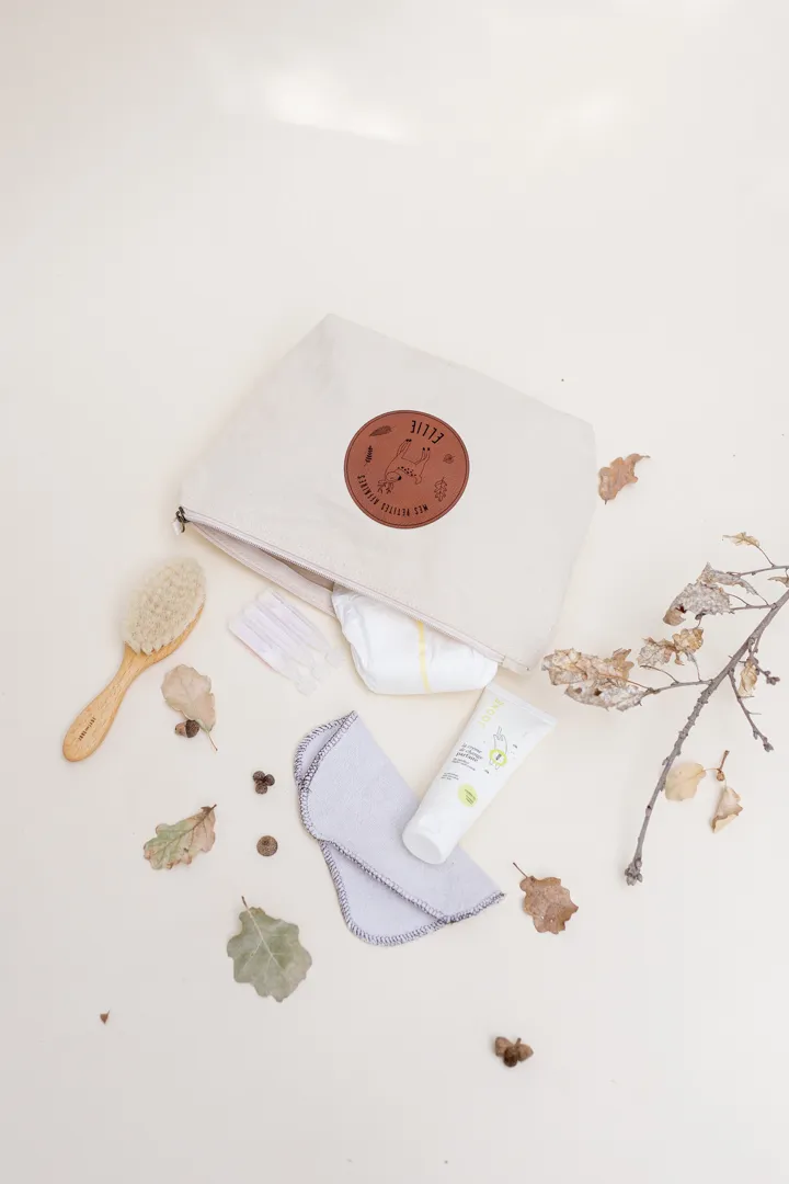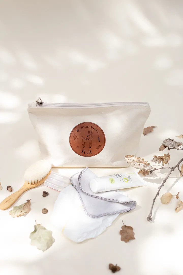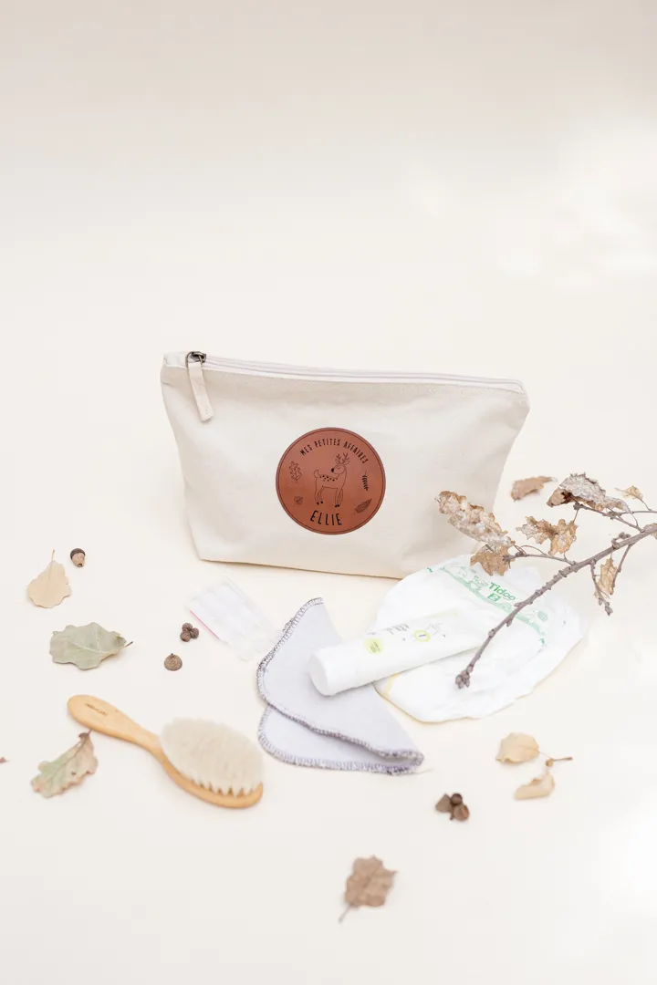 Cette grande trousse de toilette issue de notre collection « Forêt » peut contenir tout le nécessaire de change de votre bébé ! Utile dès la maternité et dans tous vos déplacements en famille. Personnalisez-la avec le prénom de l’enfant. Matériaux : 100% coton brossé organique certifié. Étiquette en cuir synthétique Dimension : 29x18cm – souflet 9cm Délais de fabrication : 3 à 4 jours ouvrés. Livraison : 72h en lettre suivie.