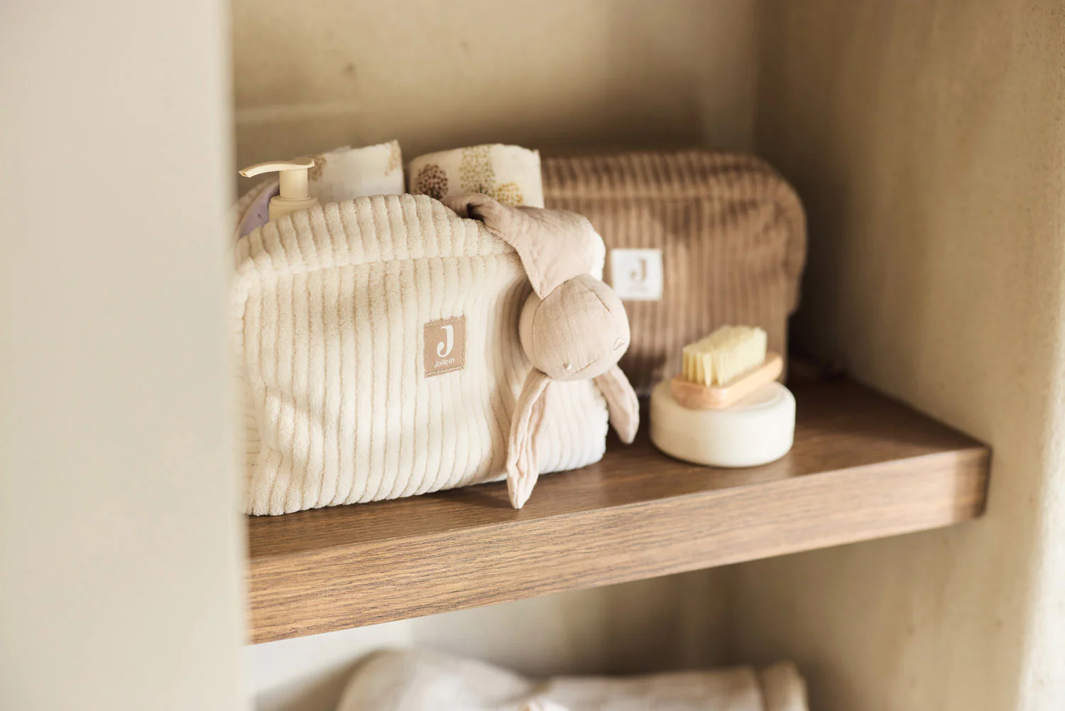 Produits, couches, liniments, cotons… tous les petits essentiels trouvent leur place dans cette trousse signée Jollein.