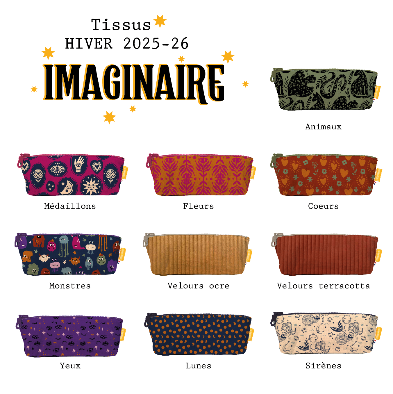 Nouveau format plus grand ! Une face écrue pour personnaliser, l’autre avec un de nos sublimes tissus 😉. Idéale pour y ranger stylos, feutres, gomme, règle…
